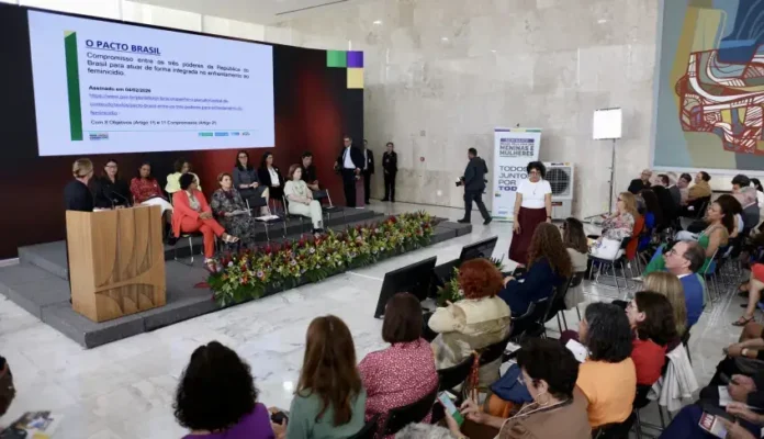 A ministra-chefe da Secretaria de Relações Institucionais da Presidência da República, Gleisi Hoffmann, apresentou o pacto ‘Todos por Todas’, iniciativa que busca criar um compromisso entre os Três Poderes da República para o enfrentamento à violência contra as mulheres. A medida visa consolidar o combate ao feminicídio como uma causa de Estado no governo Lula, mobilizando diversos setores da sociedade.
